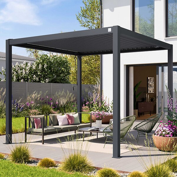 (3x3m with Lights) Aluminium Anthracite Pergola