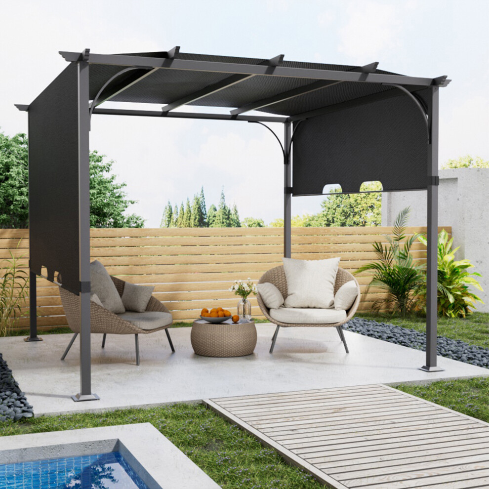 3x3m Aluminum Garden Gazebo Pergola with Retractable Canopy