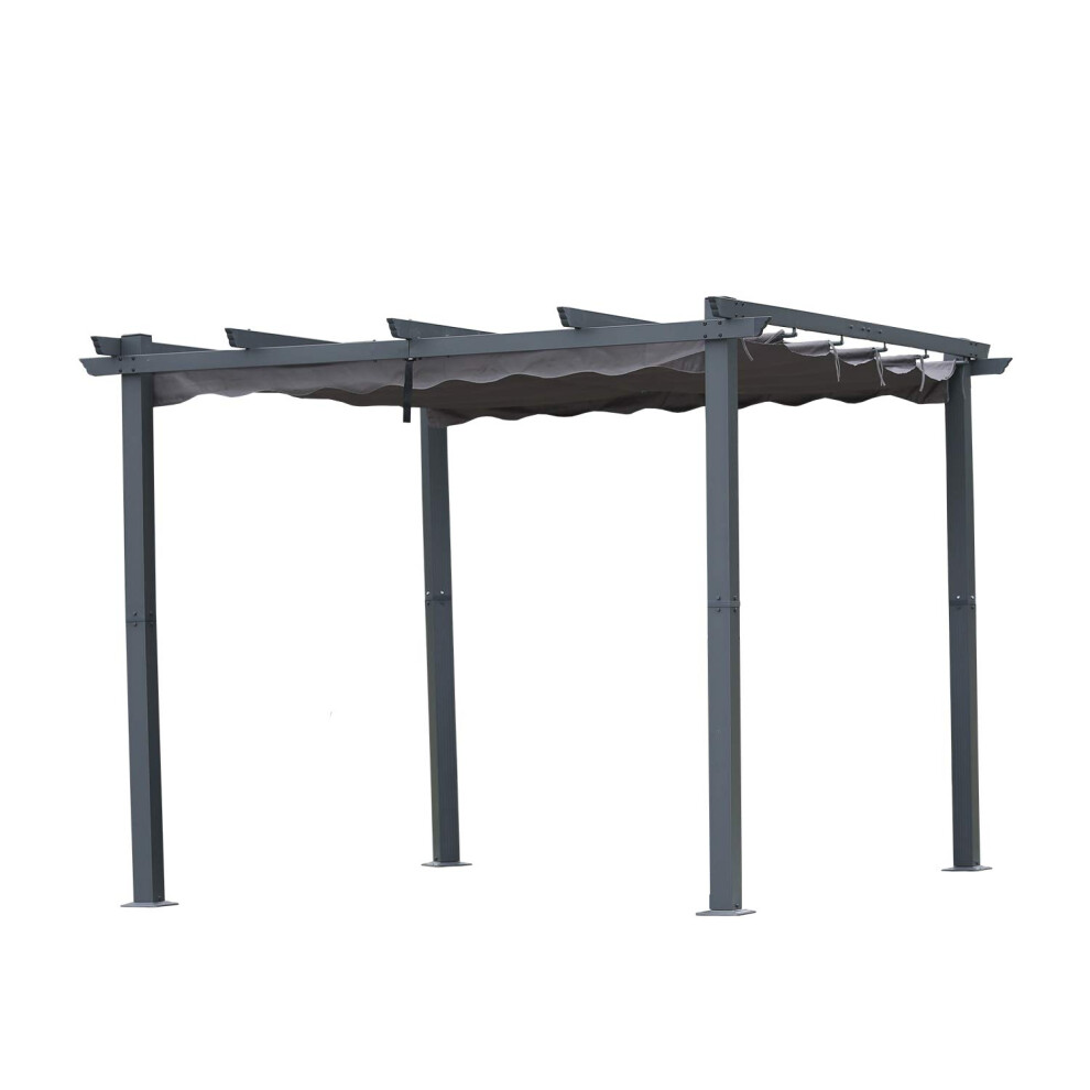Pergola 3x3m Grey Metal Frame Retractable Polyester Canopy Patio Shelter PA Coat