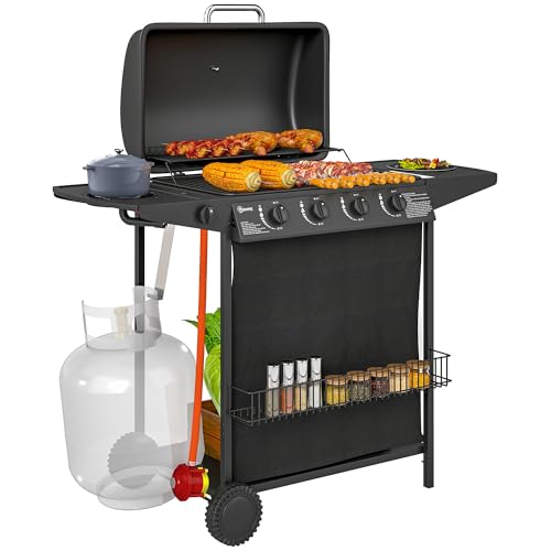Outsunny Deluxe Gas Barbecue Grill 3+1 Burner Garden Bbq With Large Cooking Area