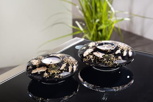 Pack of 4 Dreamlight, Tealight Candle Holder, Ufo Classic, Dreamcatcher Pattern, Glass, Black, PU 4, H. 5 cm, D. 14 cm