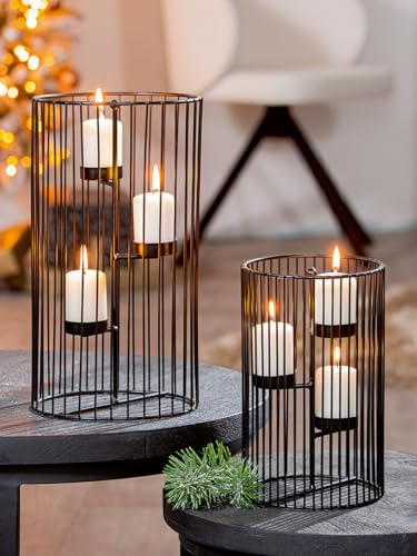 Pack of 4 Tealight Candle Holder, Cylindrical, Metal, Black, PU 4, H. 22 cm, D. 14 cm