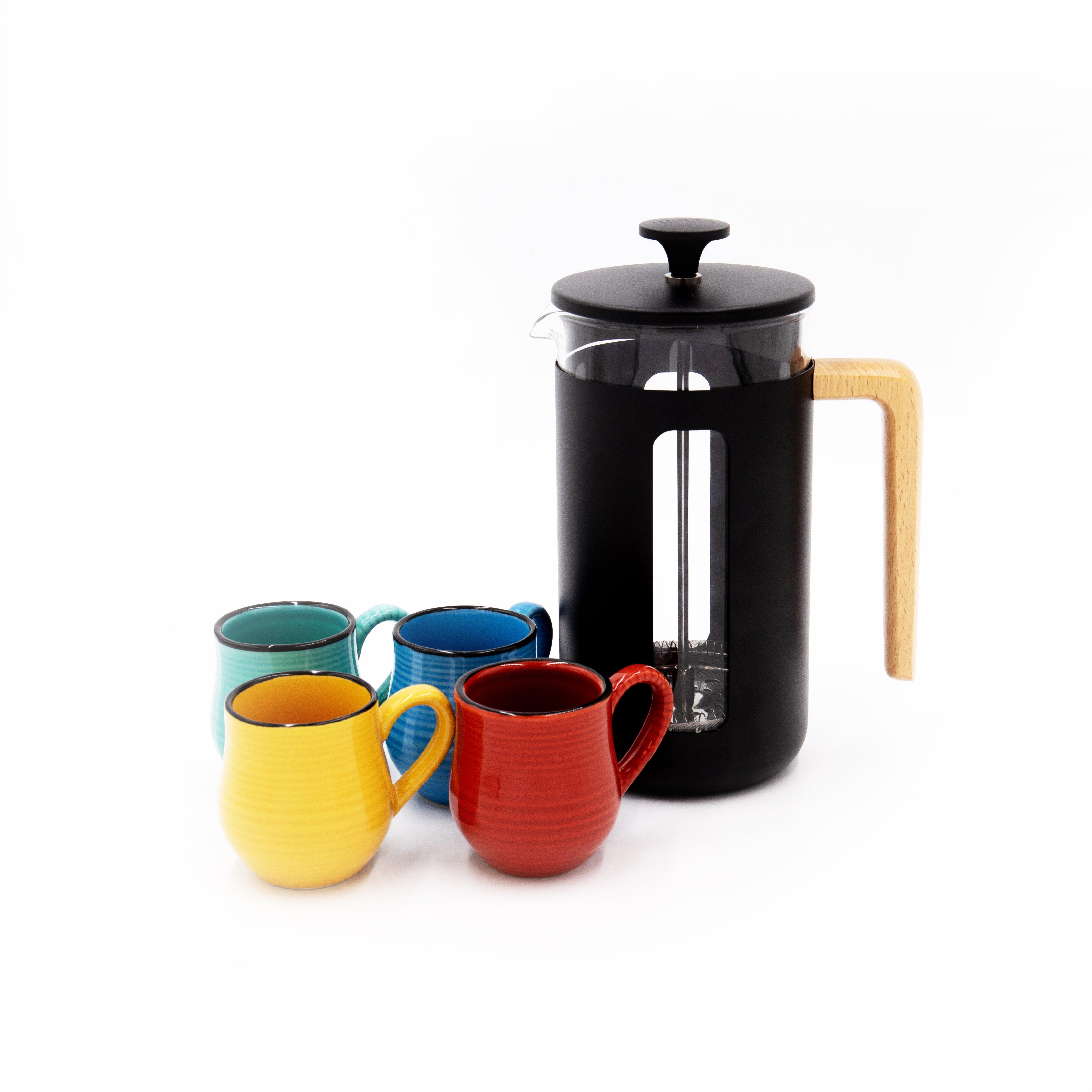 5pc French Press Coffee Set with Black 4-Cup Cafetière and Four Mysa Ceramic Espresso Cups