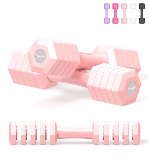 Yoleo Adjustable Dumbbell Set of 2, 4 in 1 Free Weights Dumbbells Set for Home Gym, 2KG 3KG 4KG 5KG Dumbbell Pair with TPU Soft Rubber Handle for Full Body Exercise Training (Pink)