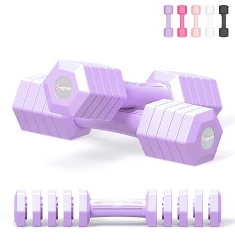 Yoleo Adjustable Dumbbell Set of 2, 4 in 1 Free Weights Dumbbells Set for Home Gym, 2KG 3KG 4KG 5KG Dumbbell Pair with TPU Soft Rubber Handle for Full Body Exercise Training (Purple)