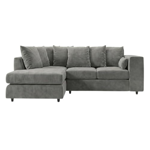 New Luxor Fabric Corner Sofa Grey | Soft Jumbo Cord 3-4 Seater Corner Sofa (Grey, Right Hand Facing)