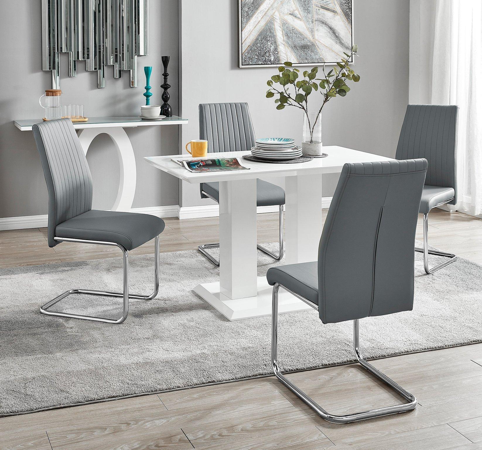 Imperia 4 Seater Modern White High Gloss Rectangular Dining Table And 4 Lorenzo Faux Leather Chairs