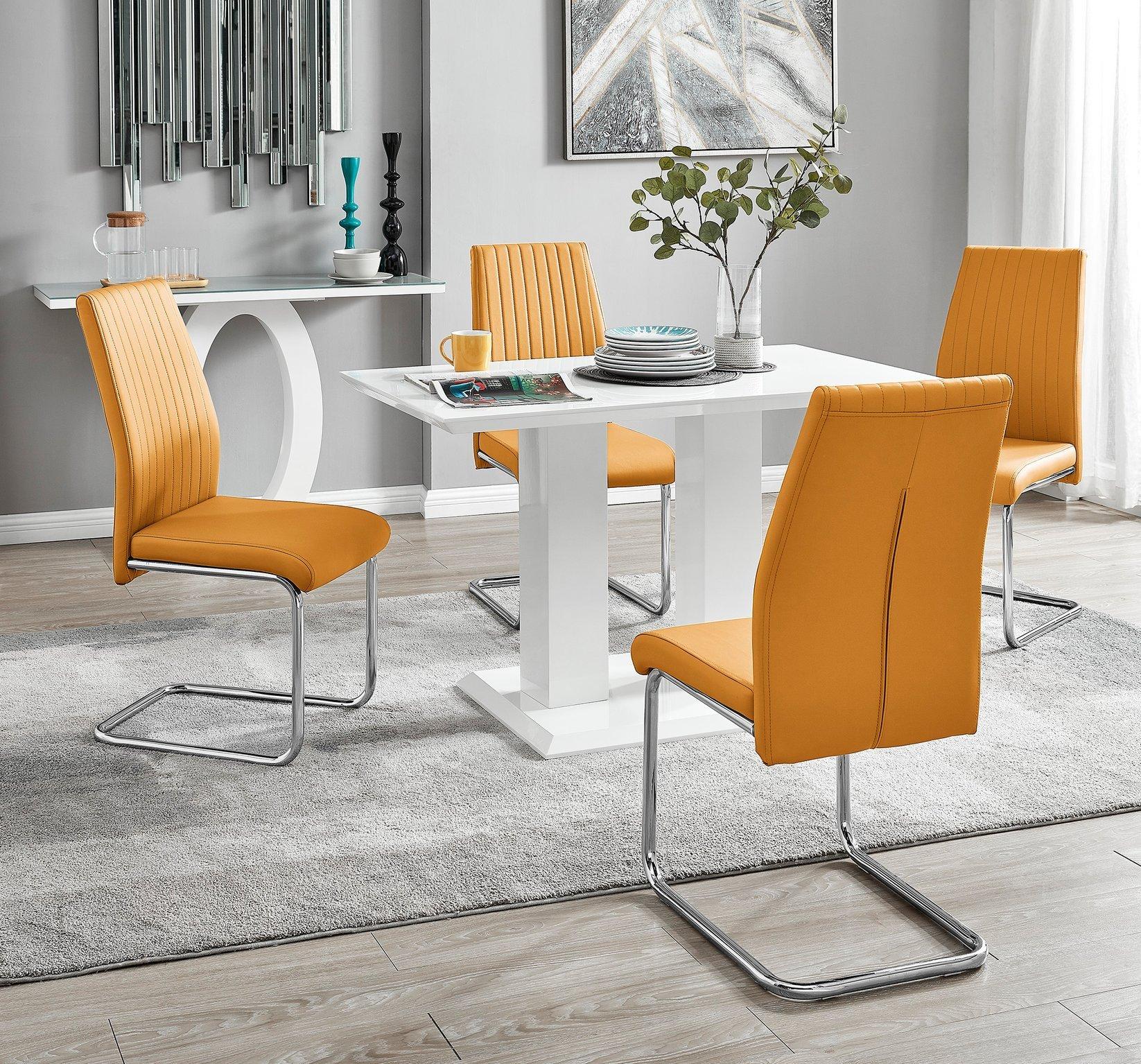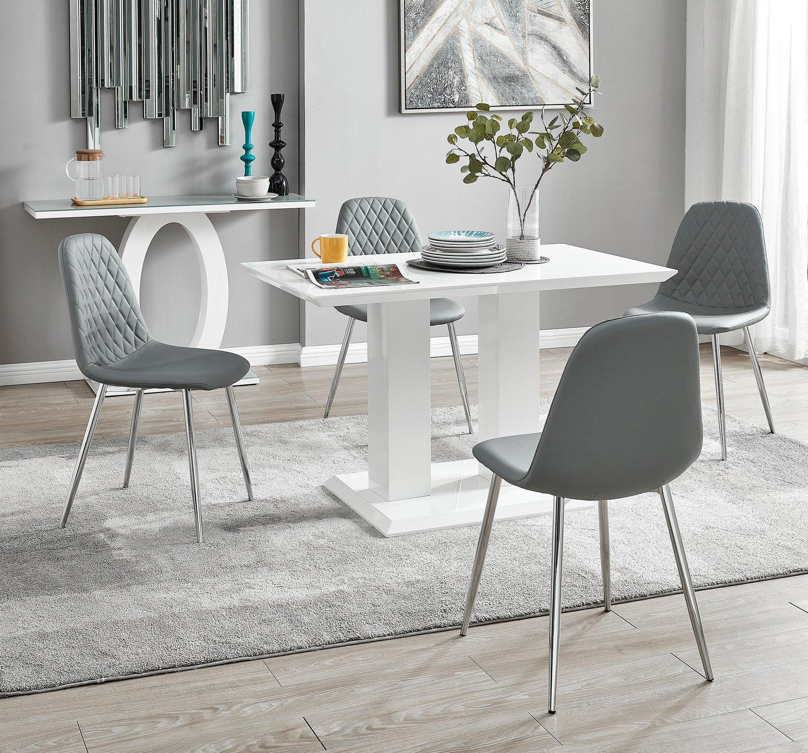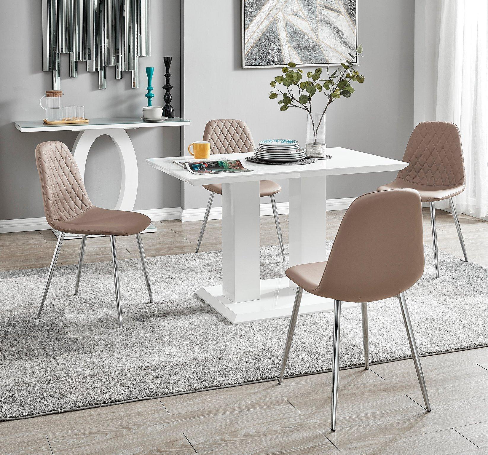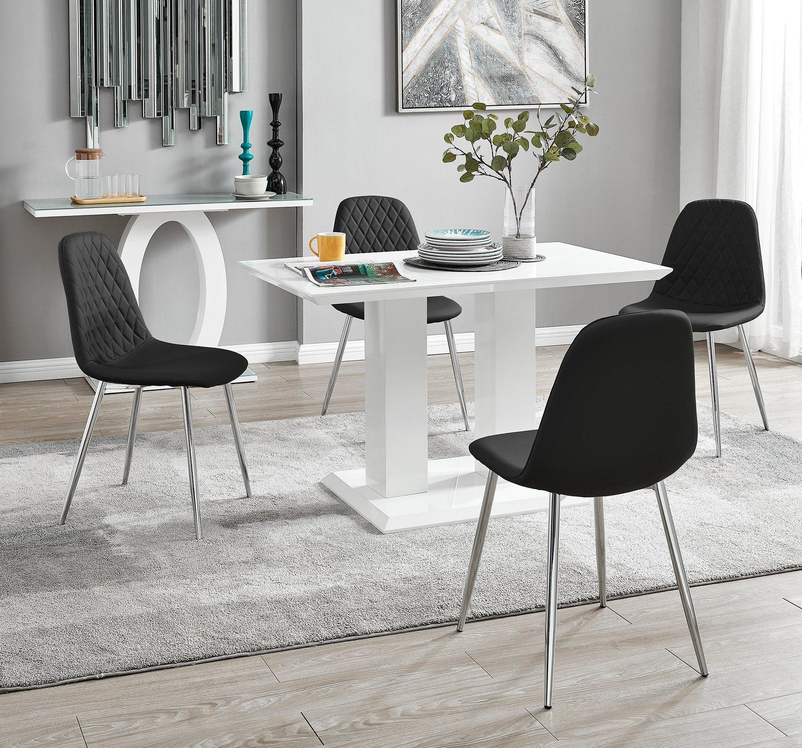 Imperia 4 Seater Modern White High Gloss Rectangular Dining Table And 4 Corona Faux Leather Chairs