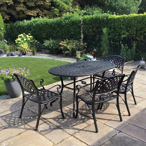 Lazy Susan June 4 Seater Oval Garden Table and Chairs Set | Maintenance Free | Weatherproof | Cast Aluminium | Antique Bronze Finish | 4 Matching Kate Chairs | No Cushions | 3 Year Guarantee