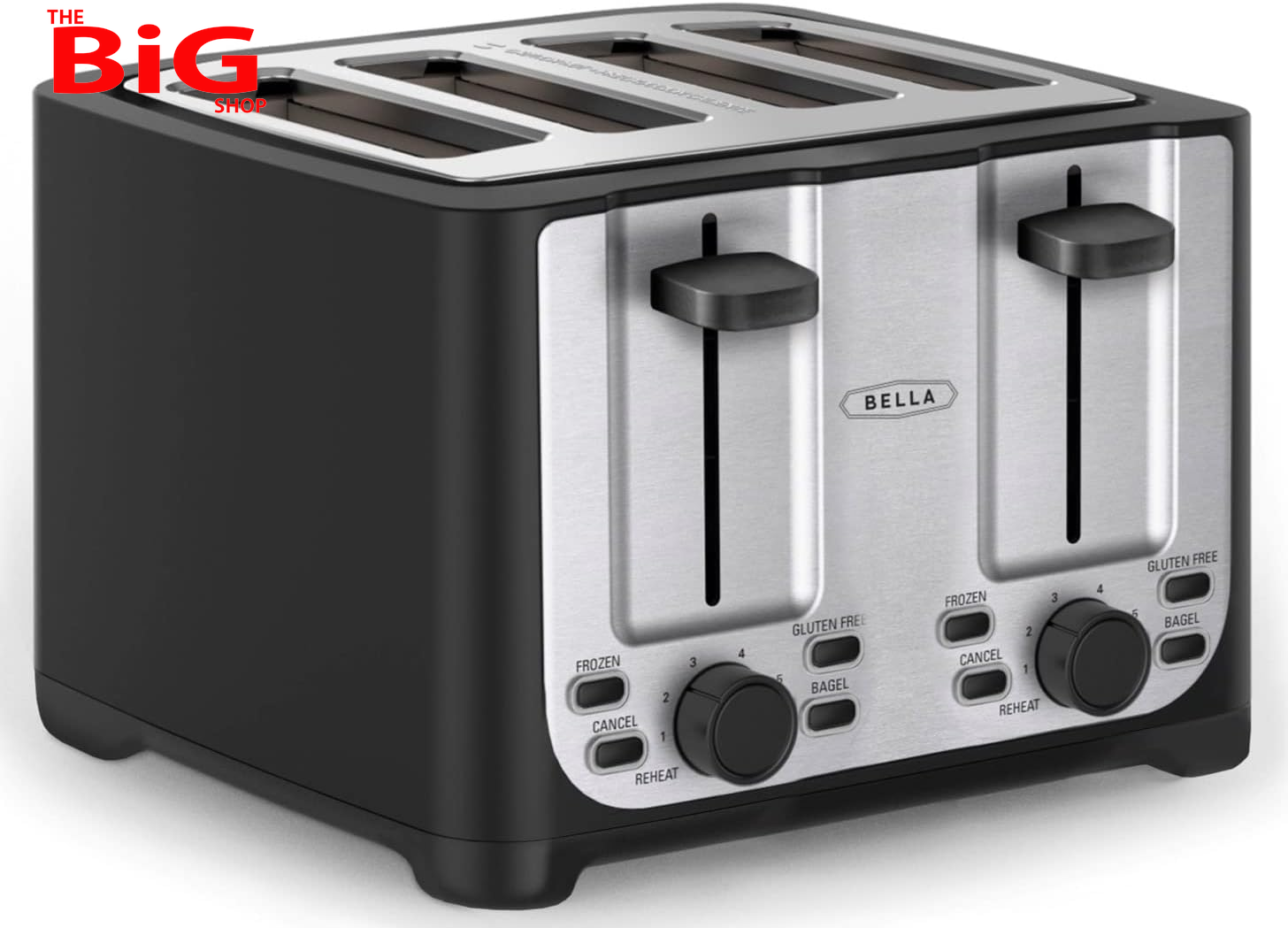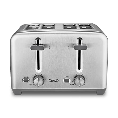 BELLA 4 Slice Toaster with Auto Shut Off - Extra Wide Slots and Removable Drop-Down Crumb Tray with Cancel and Reheat Function - For Texas Toast, Large Bread & Bagel, Stainless Steel