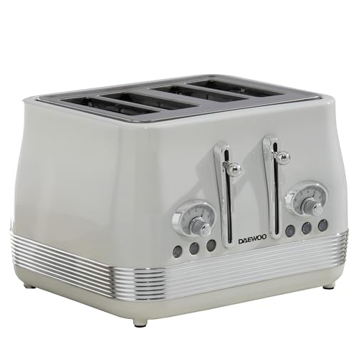 Daewoo Sienna 4 Slice Toaster, Wide Slots, 6 Browning Settings, Reheat, Defrost & Cancel Functions, Removable Crumb Tray, Stylish Taupe Finish, Ideal for Family Kitchens