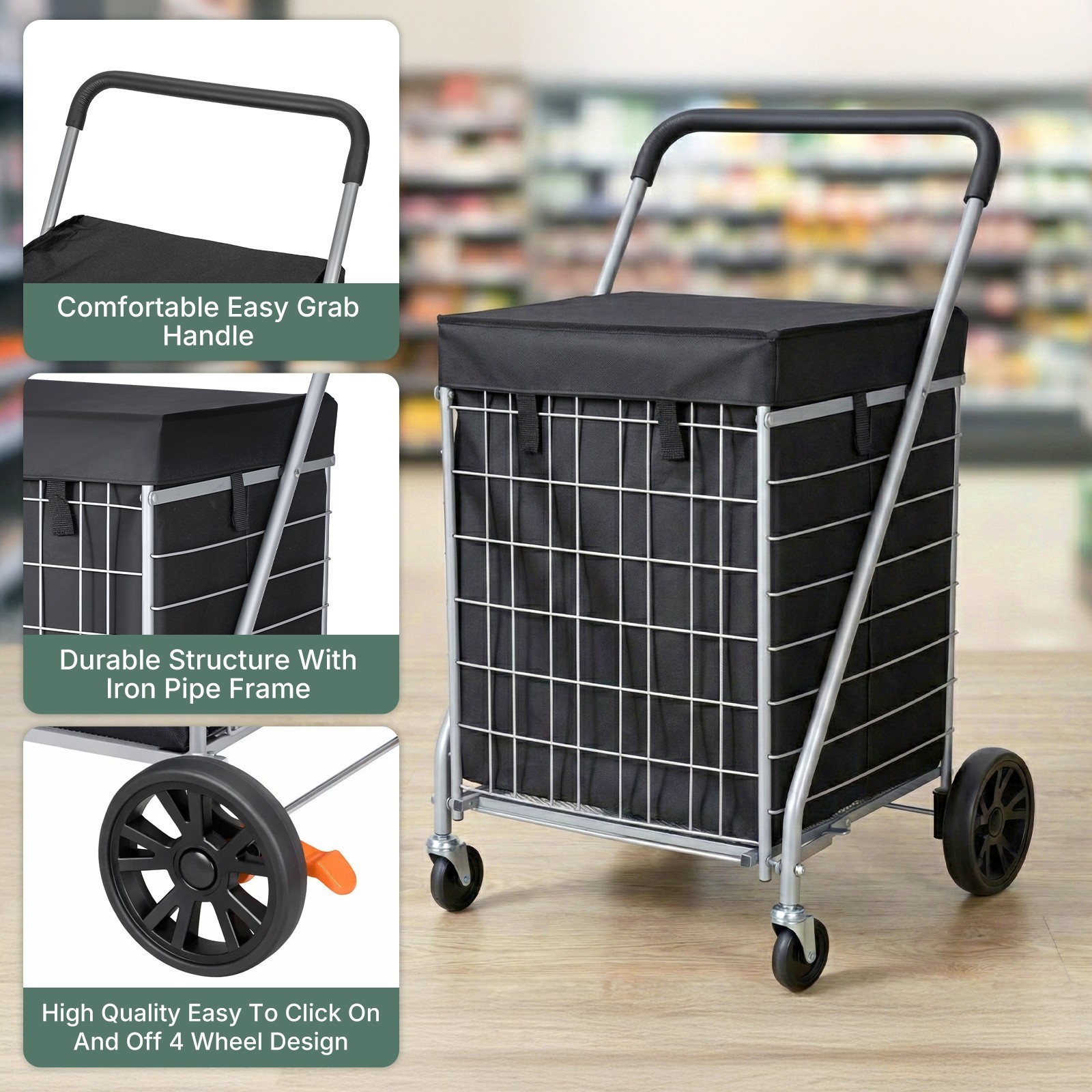4 wheel shopping trolley
