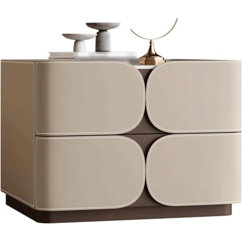 WxuuLTGJR Nightstand Square with 2 Drawers Leather Wrapped Bedside Table Solid Wood Frame Bedside Cabinet Vintage Side Table 40/50/60 cm(Khaki,40cm)