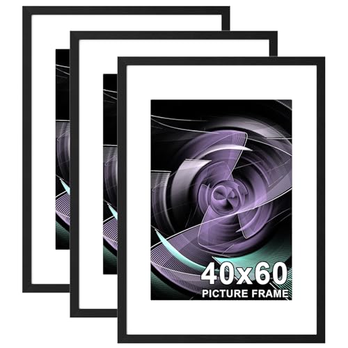 Pycisid 40x60cm Picture Frame, 3 Pack Black 60x40cm Poster Frames with Mount, 40x60 Photo Frames with Safe Perspex