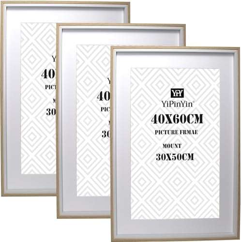 wyewye 40x60 cm Picture Frames 3 Pack Wood, Acrylic (Not Glass) 40x60 cm Photo Frame with 30x40 cm mount for Print, Certificate, Photo, Only Hang on the Wall, Black