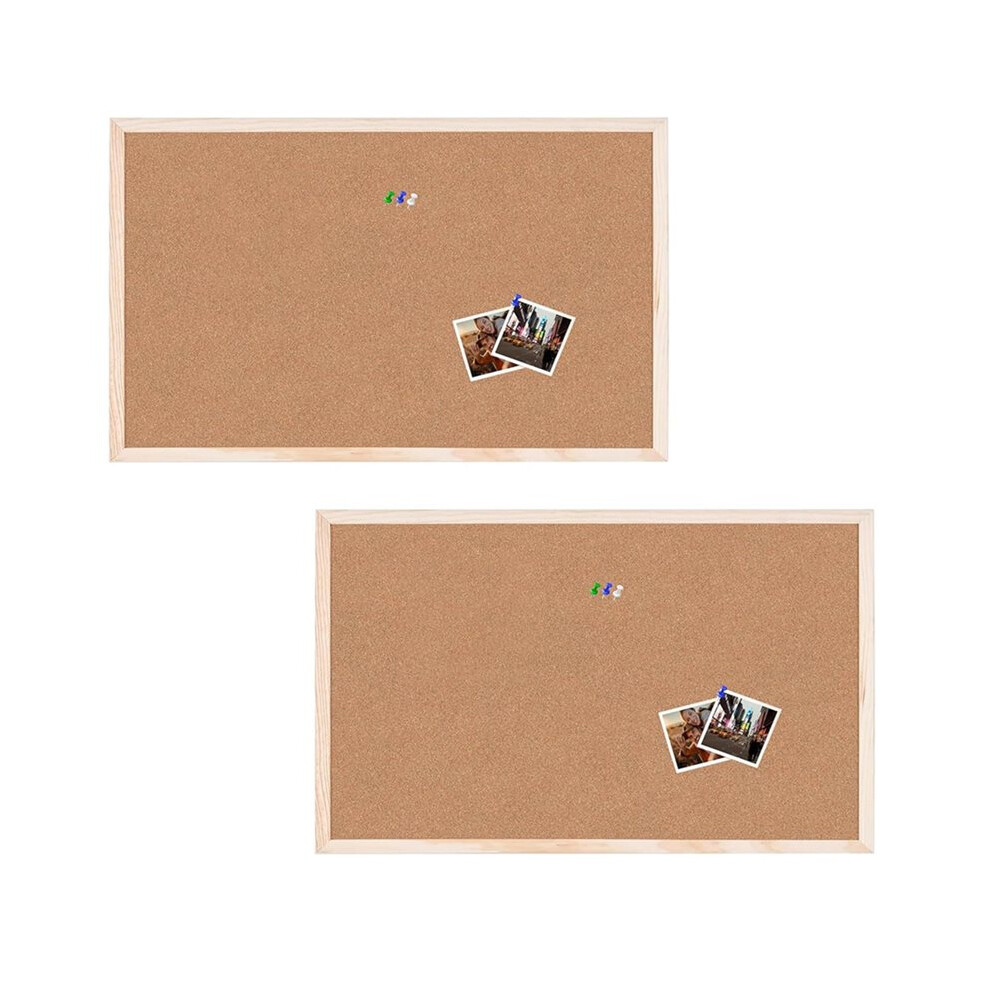 Wooden Frame 60cm x 40cm Cork Board With Pin Bulletin Board Wall Hang (Set of 2)