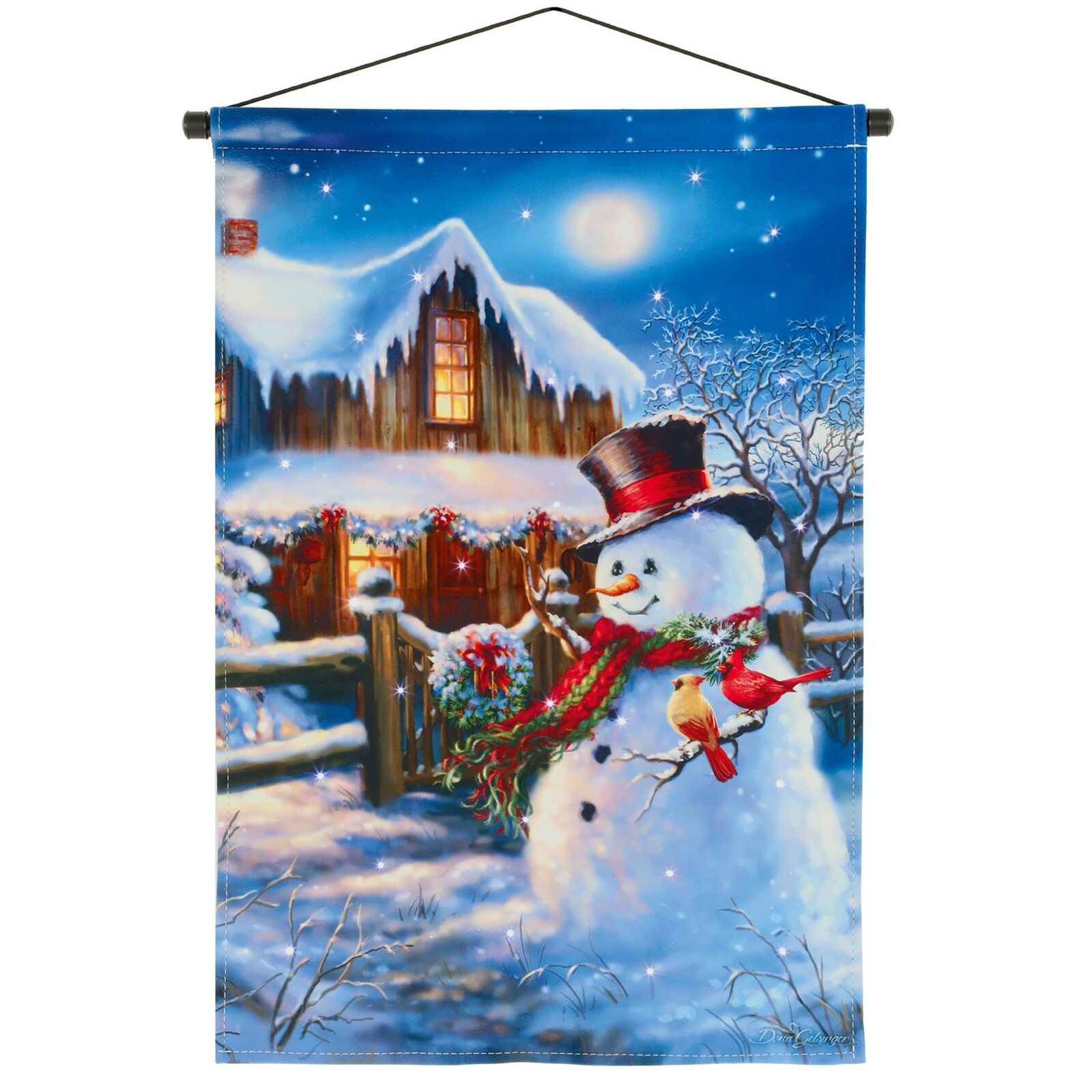 Christmas Picture Fibre Optic Lights 60cm x 40cm Fabric Scroll - Festive Snowman