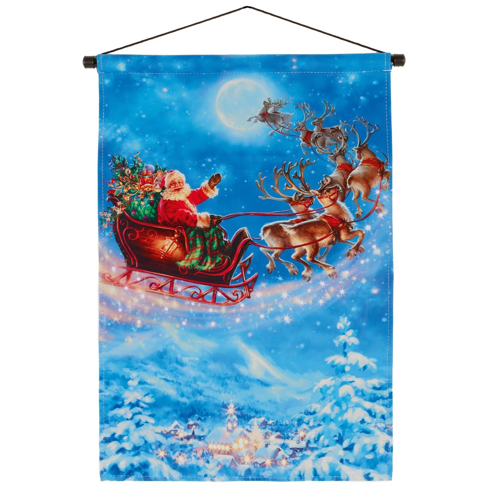 Christmas Picture Fibre Optic Lights 60cm x 40cm Fabric Scroll - Santa Sleigh