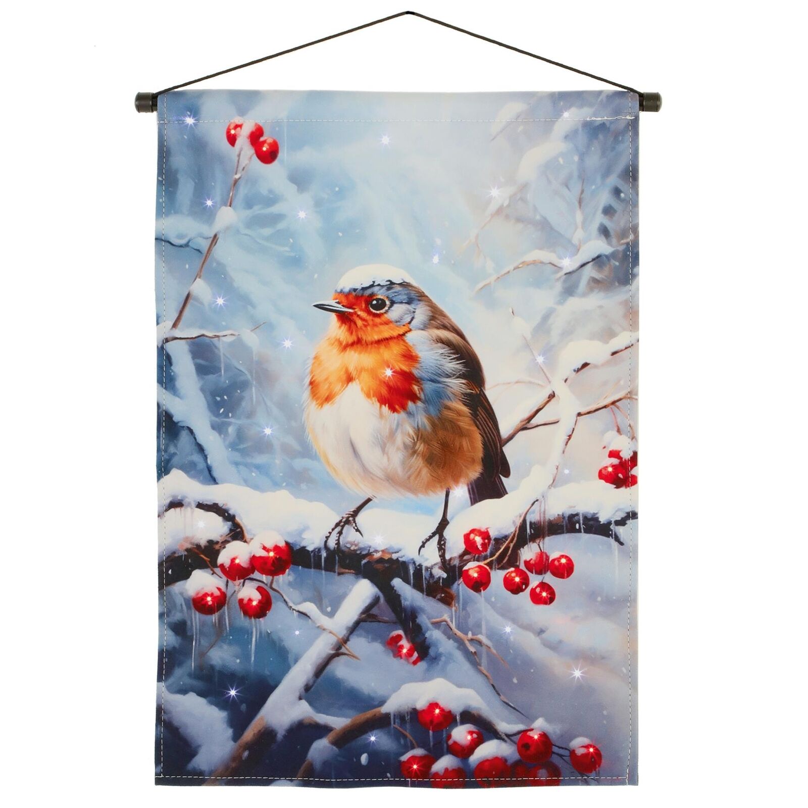 Christmas Picture Fibre Optic Lights 60cm x 40cm Fabric Scroll - Snowy Robin