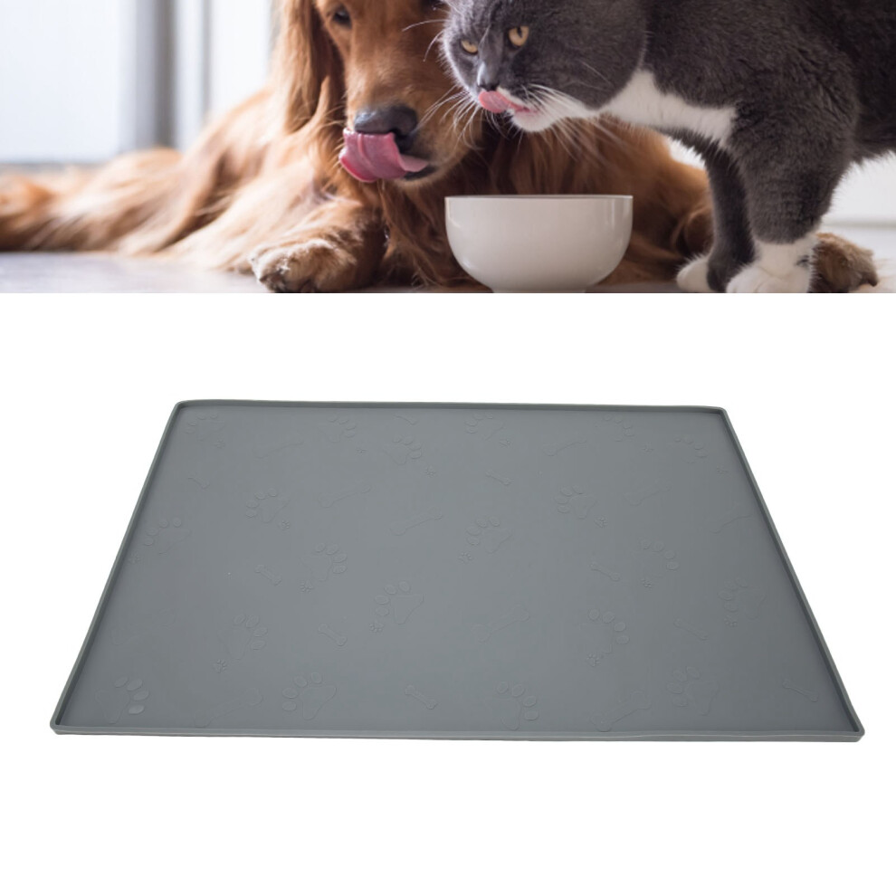 Large Gray Silicone Pet Feeding Mat 61x40cm Spillproof Dishwasher Safe