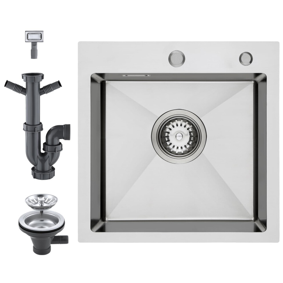 KEOKBON 40x40cm Kitchen Sink, 304 Stainless Steel Drop In/Topmount/Overmount Small Sink with 2 Tap Holes, Complete Waste Kit with Dishwasher & Washing