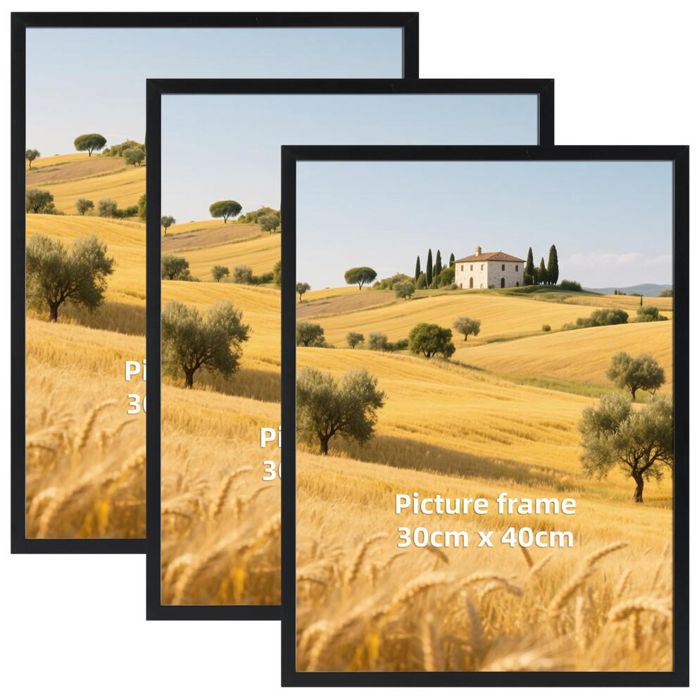 30x40 Picture Frame Pack of 3, 30 x 40cm Picture Frame Black for Posters or Art