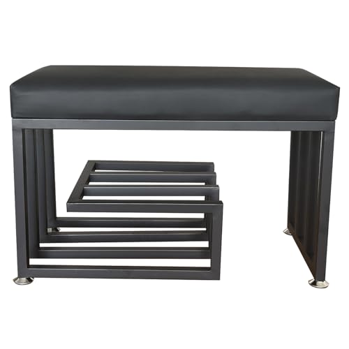 QYMYOZ Upholstered Shoe Bench with Storage, 2-Tier PU Leather Seat Shoe Rack & nizer, Metal Frame Entryway Bench for Hallway Living Room, Black (60cm x 30cm x 40cm)