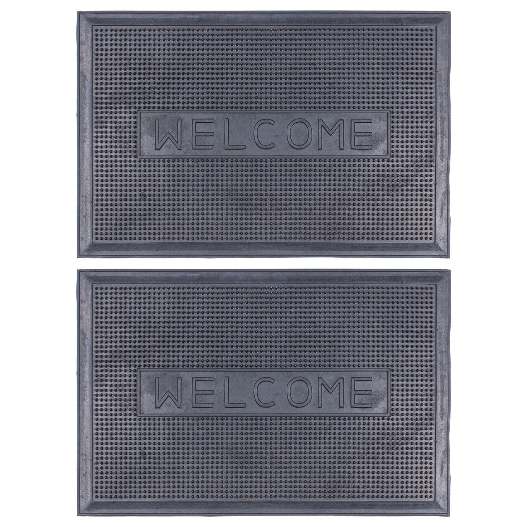 Heavy Duty Rubber Door Mat 60cm x 40cm Black Welcome Pack of 2