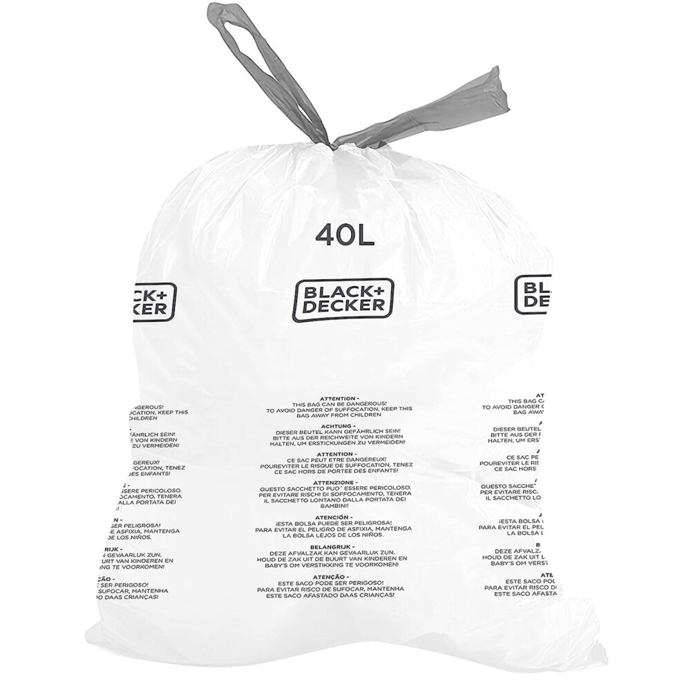 BLACK + DECKER BXBB00040E Drawstring, 20 Pack, White, 40L Bin Liner
