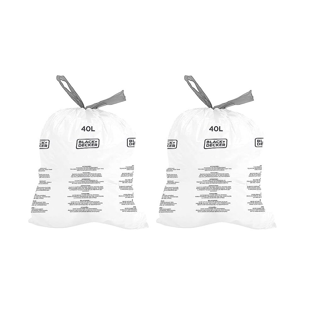 BLACK + DECKER BXBB00040E Drawstring, 40 Pack, White, 40L Bin Liner