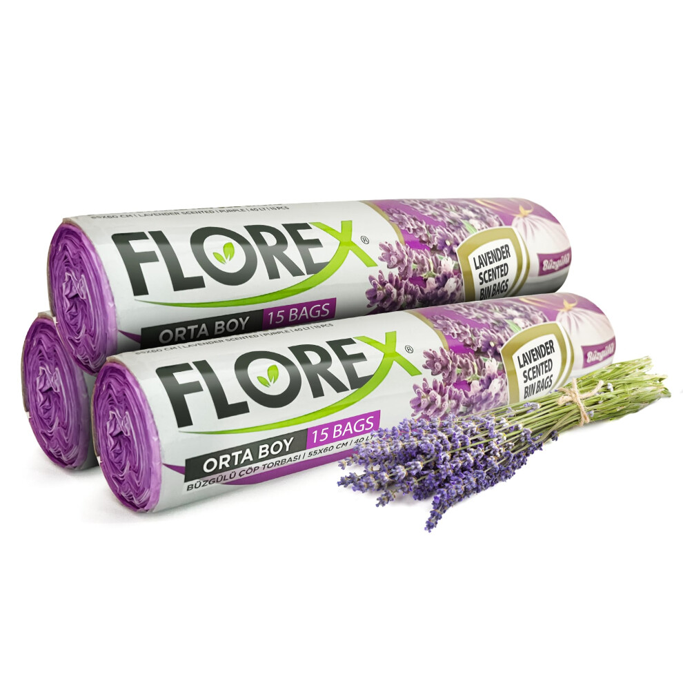 40L Swing Bin Liners with Drawstrings 60 Counts for For a Refreshing Home or Office, Use as Kitchen Bin Bags or Bathroom Bin Liners Lavender Scented
