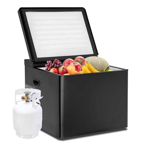 Techomey Gas Fridge 40L, 3 Way Fridge Camping for Campervan, Motorhome, Silent Gas Refrigerator 12V/24V/LPG, Black