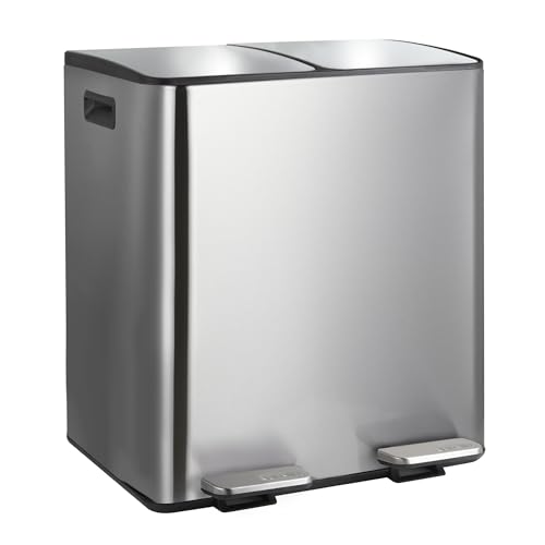 Spirella Waste Separation System 40 L (2 x 20 Litres) with Inner Bucket, Large Waste Bin, Pedal Bin, Stainless Steel, Soft-Close Mechanism, Grey