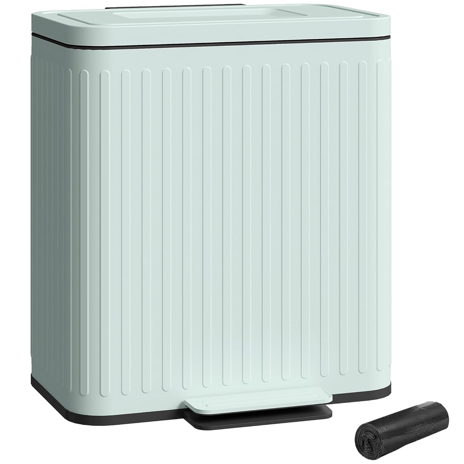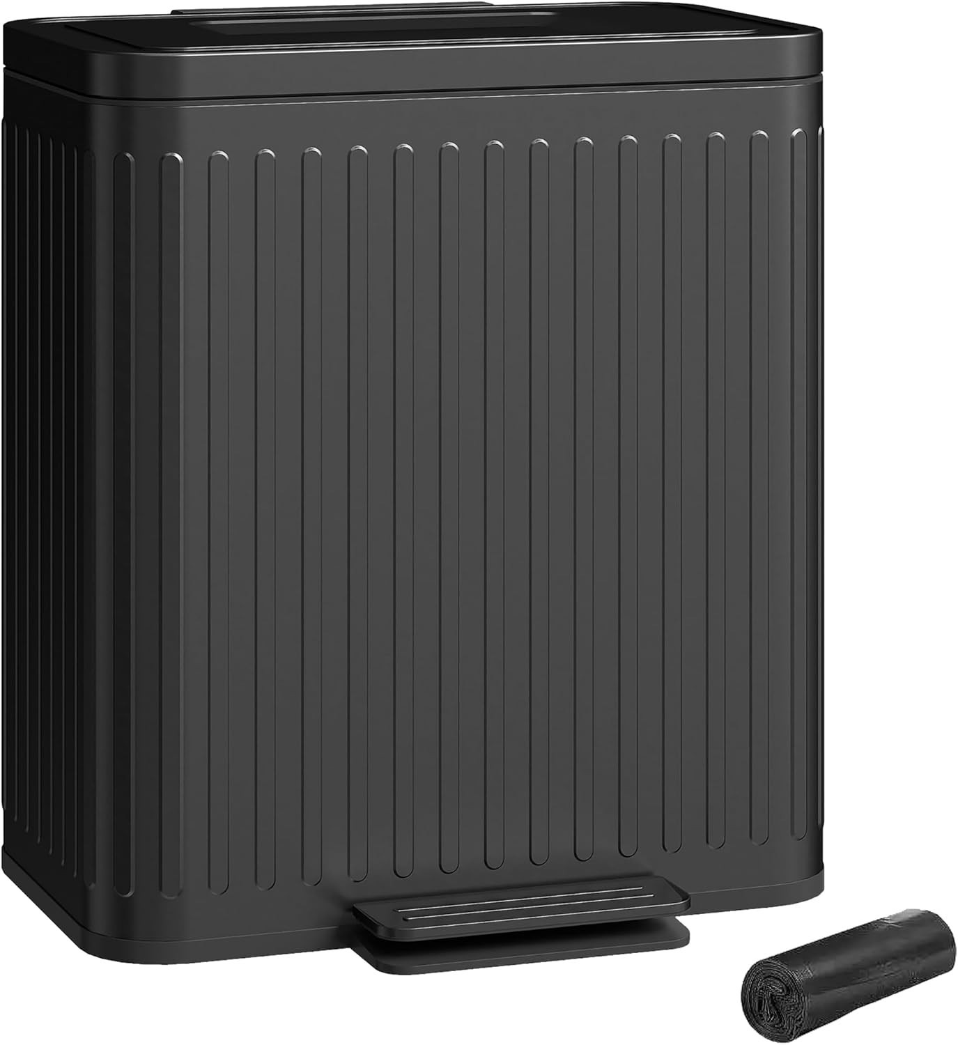 Tower Pedal Trash Bin 40L Rectangular Black Carbon Steel Soft Close Odour Filter