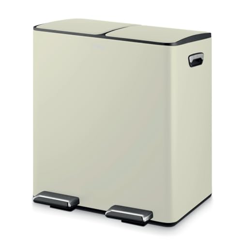 Tower T838022C Recycling Pedal Bin, Two 20L Compartments with Inner Buckets, Carbon Steel Body, 40L, Cream