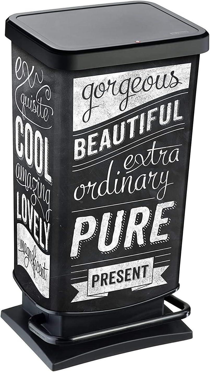 Paso Trash Can 40L with Lid and Pedal, Rotho Plastic Waste Bin, Black Hipster
