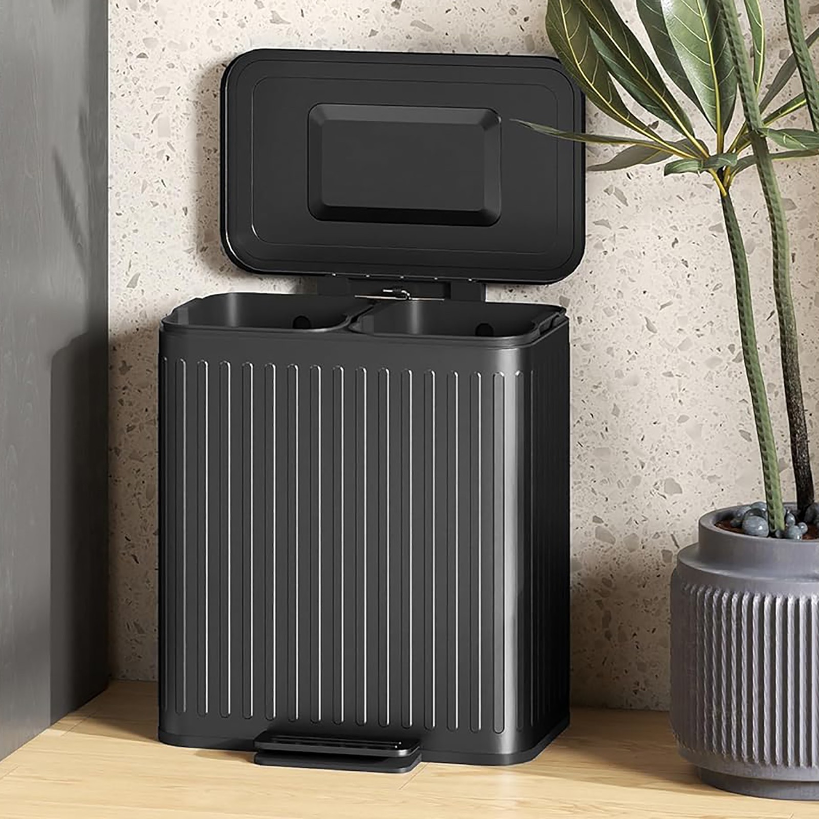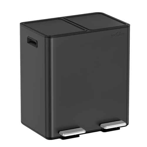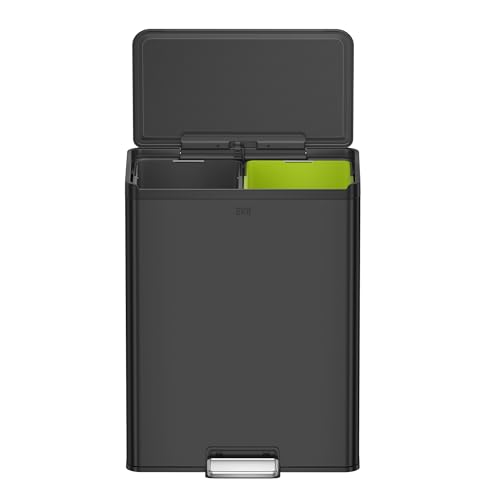 STARNINE 40L Compartment Recycling Bin Black Kitchen Pedal Dust Bin Removable Compartment Waste Separation Bin Stainless Steel Kitchen Waste Bin (40L BLACK (2 x 20L Compartments))