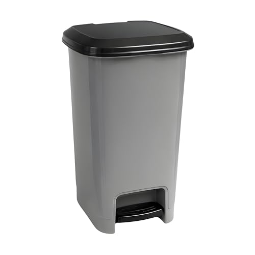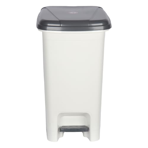 Optimal Products Plastic Square10,25 & 40L White & Grey Pedal Lid Bin Waste Garbage Indoor Outdoor Garden Kitchen Recycling DustBin (Light Grey, 40L)