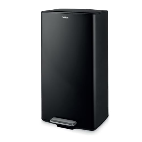 Tower T838020BLK 40L Rectangular Pedal Bin with Removable Inner Bucket and Filter Compartment, Durable Carbon Steel, Black