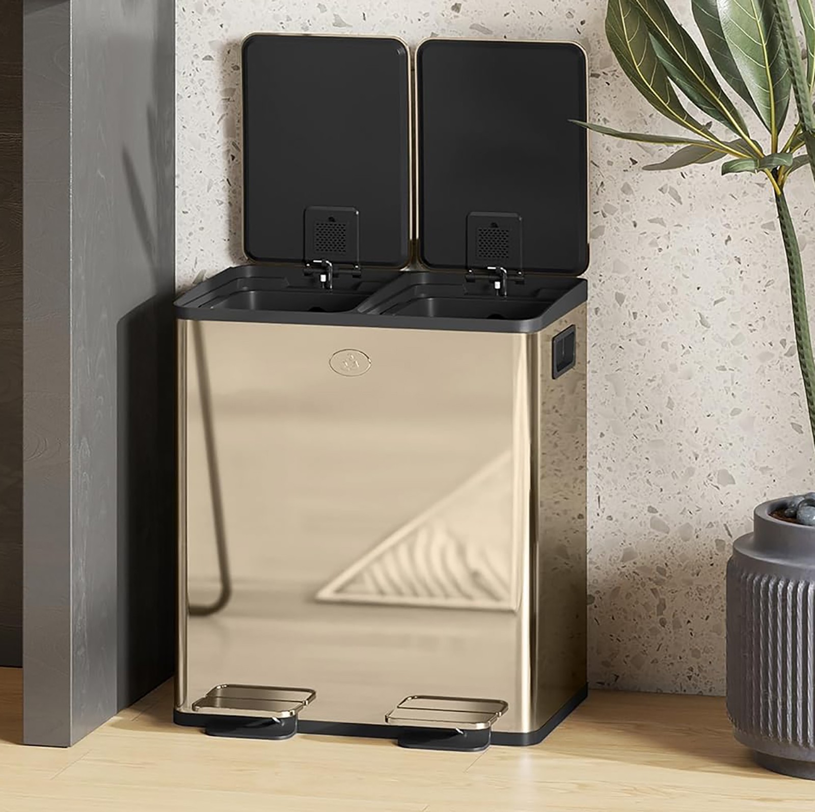 Dual Kitchen Compartment Bin 2 x 20L Double Pedal Waste Rubbish Recycling 40L