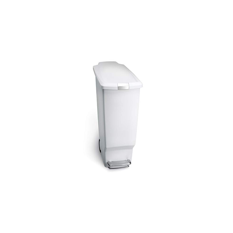 simplehuman CW1362 40L Slim Recycling Kitchen Pedal Bin with Lid Lock, Silent Soft Close Lid, Built In Wheels, Stay-Open Lid, White Plastic, W 26.0cm x H 64.0cm x D 49.0cm