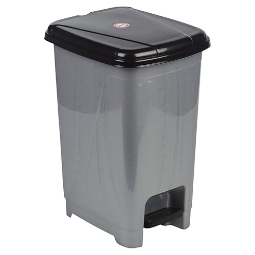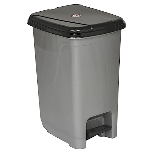 Paso Trash Can 40L with Lid and Pedal, Rotho Plastic Waste Bin, Carbon Metallic
