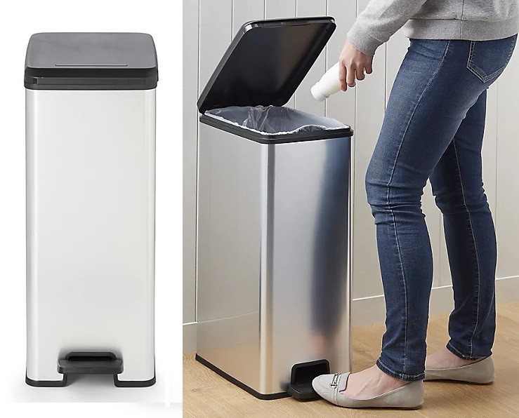 Songmics Kitchen Bin, 40L Pedal Bin with Lid, Rubbish Bin for Waste, Soft Close and Stays Open, Wide Pedal, Silver LTB541E40