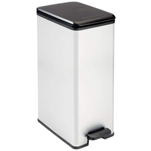Paso Trash Can 40L with Lid and Pedal, Rotho Plastic Waste Bin, White Metallic