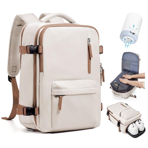 SEAFEW Vacuum Backpack Travel Bag with Pump,Ryanair Airlines 40x20x25 Underseat Cabin Bag,Travel Backpack Carry on Bag for Airplanes Comfort Casual Rucksuck for Men and Women,H6-Beige brown