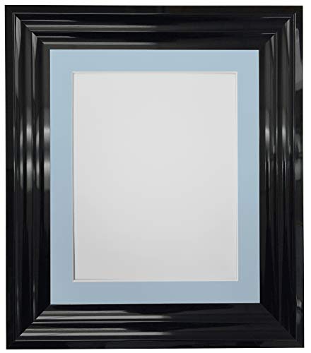 FRAMES BY POST Firenza High Gloss Black Picture Photo Frame Plastic Glass with Blue Mount 40x50 cm Image Size 16"x12"