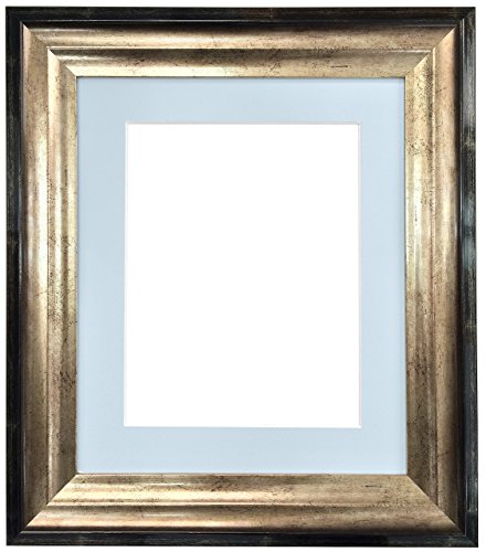 FRAMES BY POST Firenza Antique Distressed Black and Gold Picture Photo Frame Plastic Glass with Blue Mount 40x50 cm Picture Size 15"x10"