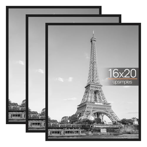 upsimples 3 Pack 40x50 Picture Frame, Black Picture Frame for Photo Gallery - Slide-In Strips, Horizontal or Vertical Wall Mounting