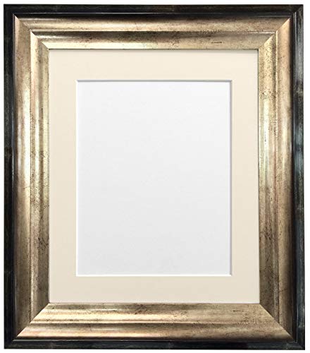FRAMES BY POST Firenza Antique Distressed Black and Gold Picture Photo Frame Plastic Glass with Ivory Mount 40x50 cm Picture Size 16"x12"