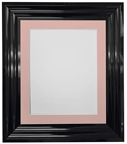 FRAMES BY POST Firenza High Gloss Black Picture Photo Frame Plastic Glass with Pink Mount 40x50 cm Image Size 16"x12"
